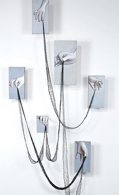 藝術品標識的創意,手與線條的設計風格。
